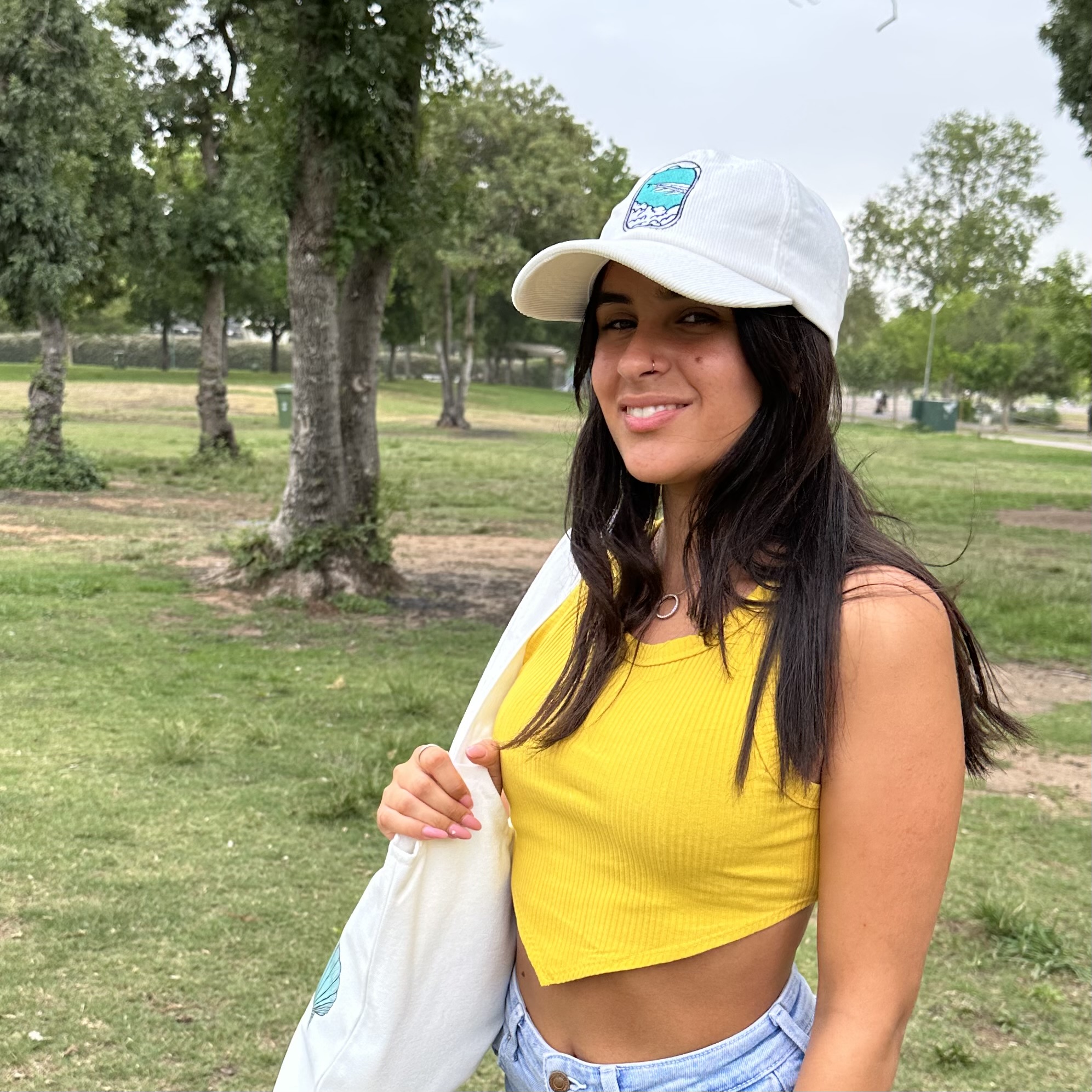 כובע קורדרוי בצבע לבן עם רקמה איכותית בעיצוב האמנית