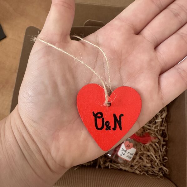 ♥ לב אדום עם ראשי התיבות של שני בני הזוג